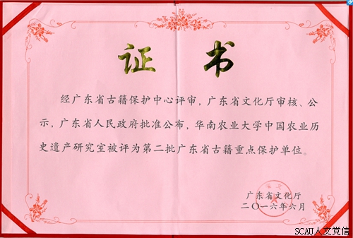 广东省文化厅日前发布了第二批广东省古籍重点保护单位和第二批广东省珍贵古籍名录,我校中国农业历史遗产研究所评审总分位居榜首的资格入选广东省古籍重点保护单位。
