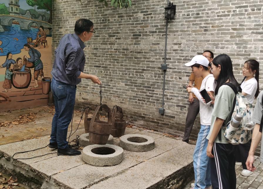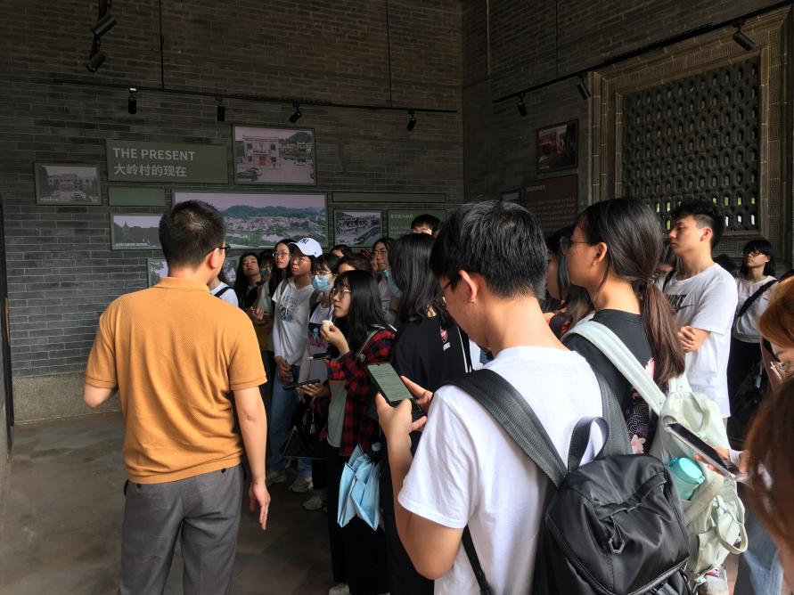 村内古塔、古桥、古祠堂、门楼、牌坊、麻石巷、古树、蚝壳墙等具有显著岭南特色的古建筑随处可见。大岭村现保存较完好的岭南风格建筑群约9000平方米,其传统的建筑院落格局主要为三间两廊式格局,体现典型的岭南民间建筑文化,是明、清、民国初期三个时代的遗存,其中大量为清末民初建筑。通过参观显宗祠、陈氏大宗祠、两塘公祠、文昌塔等大岭村的景点和李春江、郑克钊经理介绍,同学们切身体会了明清岭南以血缘为纽带的宗法文化、农耕文化、民俗文化。同学参观过后不禁感叹“大户人家”,通过这次参观同学们感受到了大岭村这个传统村落曾经的辉煌和人才辈出,同时也深刻认识到乡村振兴的必要性。