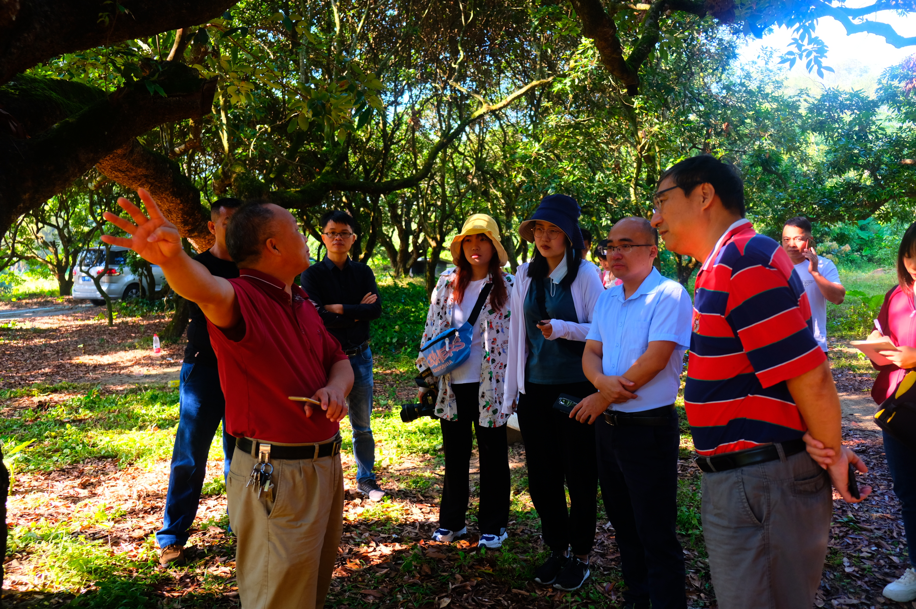 图四 倪根金教授、陈志国副教授率队在茂名古荔枝贡园调研