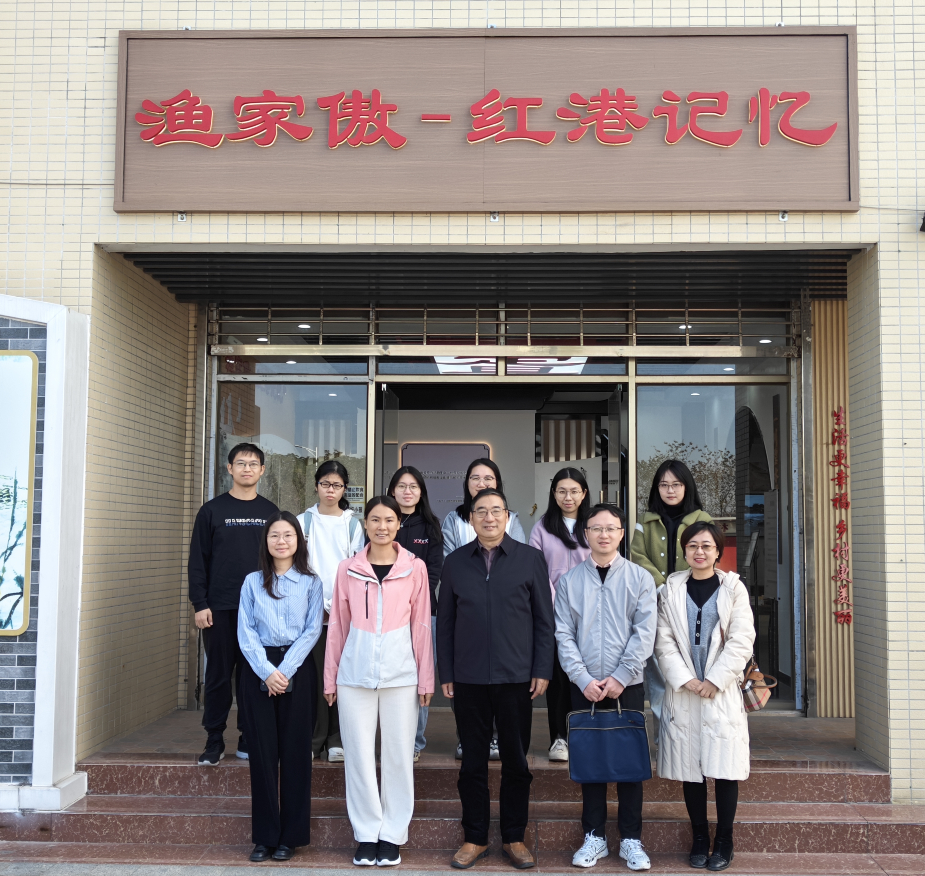 11时,团队到达万顷沙镇红港村的“渔家傲——红港记忆”展馆继续参观,红港村的何燊花支书热情接待了团队。作为展馆的建设者,简要说明红港村的发展历程后,何燊花支书就向团队详细地介绍了当地传统的生产劳动、疍民居所、疍民服饰、饮食习惯等内容。倪教授就展馆内的各类渔具名称、用途与何支书进行交流探讨。交流中,何支书还提及红港村渔业发展面临的困境,渔业资源的减少,传统渔业生产的效益远不如外出务工,目前村内仅少部分村民仍在坚持从事渔业生产,与渔业相关的农业文化遗产资源面临消亡,“红港记忆”亟待挖掘和保护,这也是设置展馆等保护工作的出发点。而后在何支书的带领下,团队还考察了村内河涌的独特景观及屋前所系的渔船。