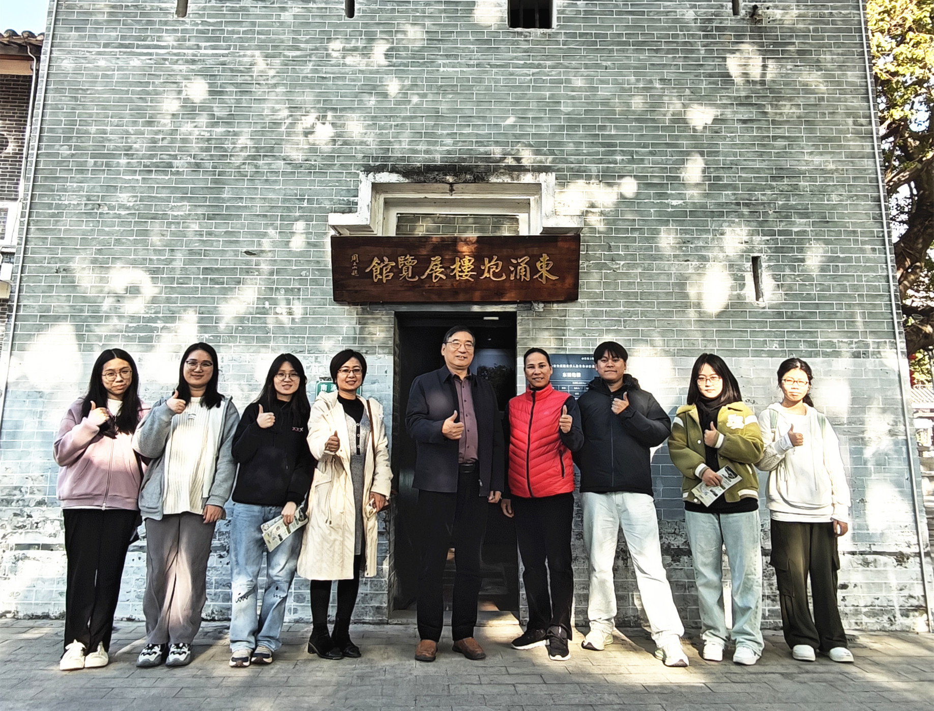 下午3时,团队前往东涌镇农耕渔猎展览馆和东涌炮楼展览馆进行参观。农耕渔猎展览馆共两层,一楼以图文和实物的形式,展出了当地农业生产中的各类传统农具,数量较多,解说规范,其中不少是沙田中独特的农具。二楼展馆内搭建了水乡茅寮,还原了疍家人往日生活和捕鱼的场景。团队向展览馆工作人员了解疍家人民的结婚嫁娶、节庆礼仪等风俗活动。谈及当地的咸水歌时,展览馆工作人员、游船撑船女桃姨还为大家即兴演唱了两段自学的咸水歌,极具疍家风情。