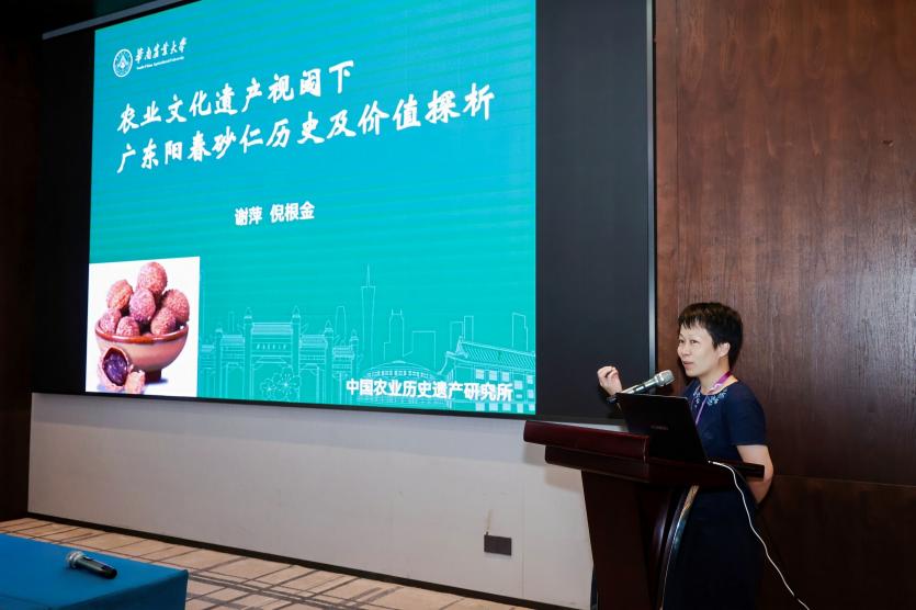 12日下午在平行论坛“木本类农业文化遗产与乡村振兴”的分论坛中,谢萍副教授做《农业文化遗产视阈下广东阳春砂仁历史及价值探析》,从农业文化遗产的角度对阳春砂仁的“南国仙草”的种植历史、“林下生金”生态价值进行了探析,提出了保护阳春砂仁农业文化遗产系统的重要性以及紧迫性。