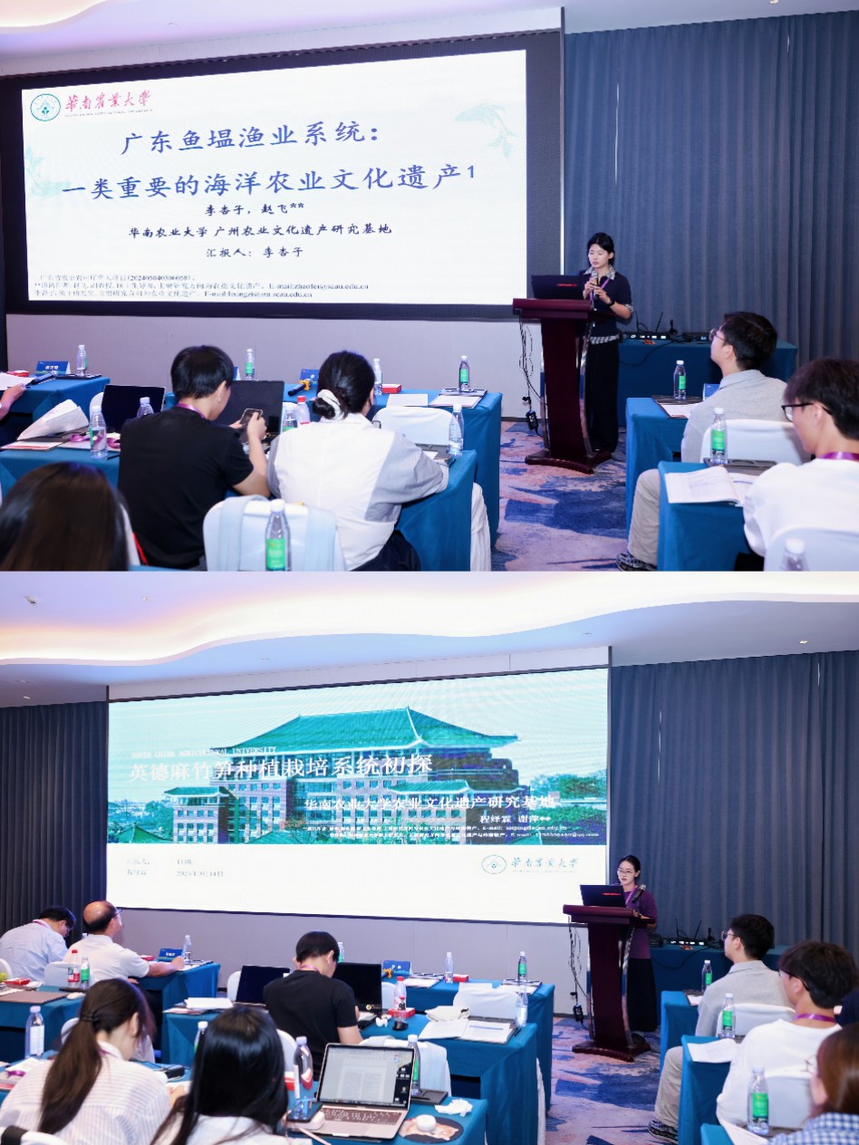 在农业文化遗产研究生论坛上,研究生李杏子、程绎霖参加了研究生论坛汇报和交流,分别做了《广东鱼塭渔业系统:一类重要的海洋农业文化遗产系统》、《英德麻竹笋种植栽培系统初探》的报告。