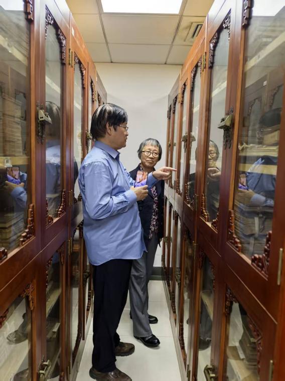 座谈交流后,周武忠教授在农史所老师的陪同下,还参观了农史所古籍特藏室。周教授在了解特藏书库馆藏文献后,对农史所在农业文献保护、整理与研究方面的工作表示高度赞赏,并就如何将古代农业历史文献中所记载的农业智慧融入当代乡村文化建设上提出了宝贵的建议。
